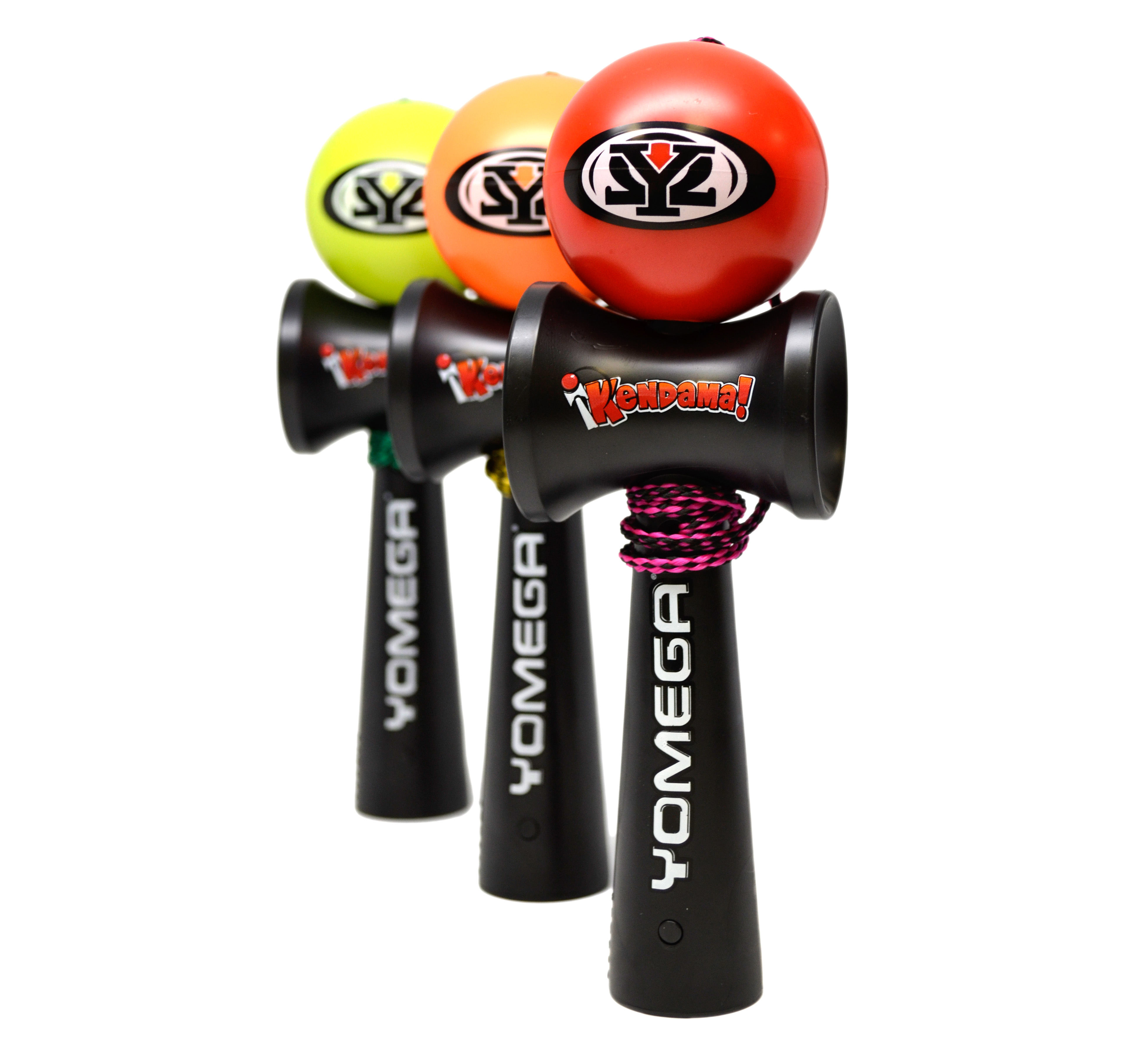 Yomega's Kendama is a traditional Japanese game that is easy to play but difficult to master. The basic object of Kendama is to catch the ball on each of the cupped surfaces of the hammer-like handle. The Kendama ball has a hole in it, which allows advanced players to catch it on the spike. In addition to these basic maneuvers, there are numerous other tricks players can perform, all of which require great hand-eye coordination.
